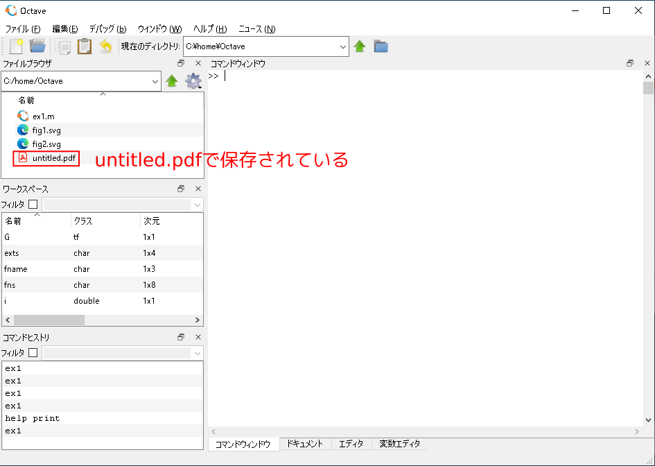 print命令により、実行ファイルと同じフォルダ中に図が保存されていま す。printのオプションについて