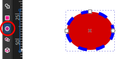 選択ツールアイコンでのクリックでは、図形そのものの拡大縮小(後述)になるので、 使い分けを意識してください。
