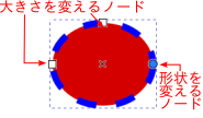 図形そのものを拡大縮小する方法と、図形中のノードを移動する方法がありま す。