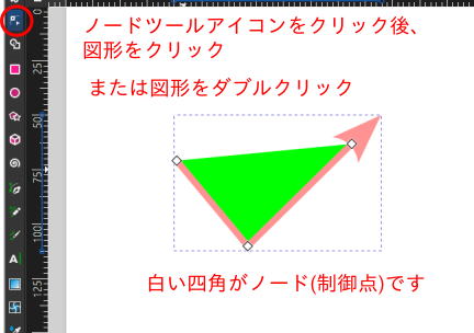 ノードツールアイコンを選択後、図形をクリック。 または、図形をダブルクリック