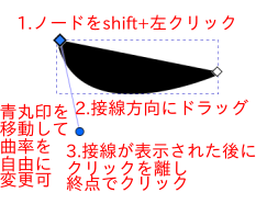3.SHIFTキー押したままノードを左クリックし、マウスを動かすと、任意のカーブになります。