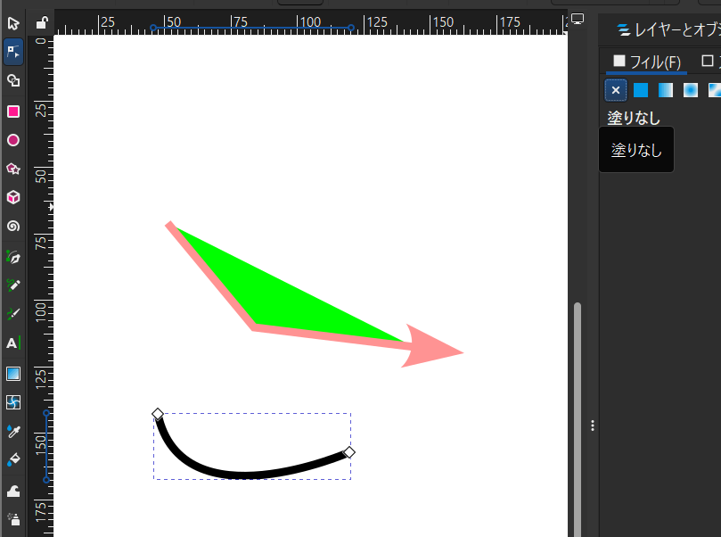 - フィルを「塗りなし」にすると線だけ現れます。