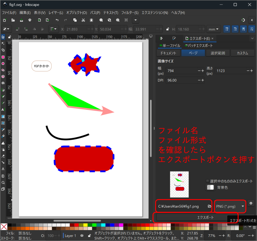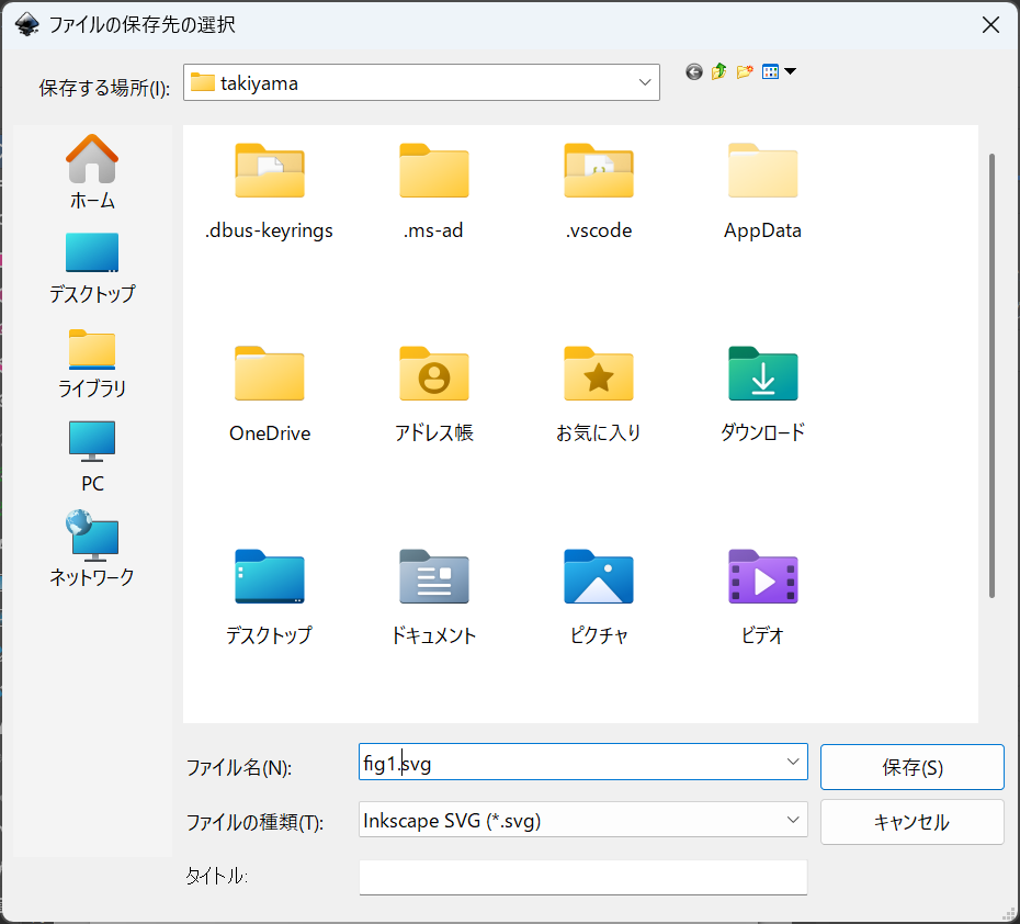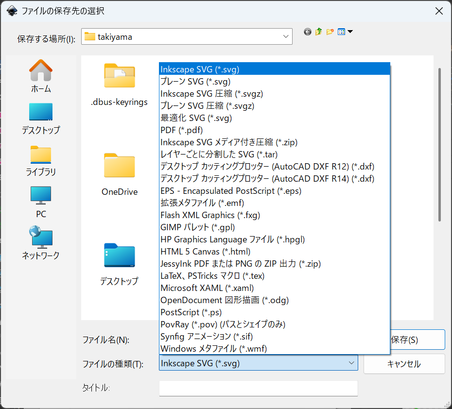 一旦は必ずsvg形式で保存してください。他の形式ではInkscapeでは編集できません!!
