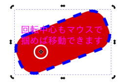 - 回転中心も移動できます。マウスで掴んで移動させます。