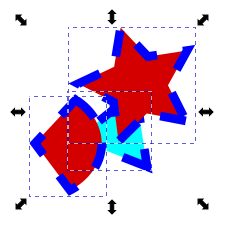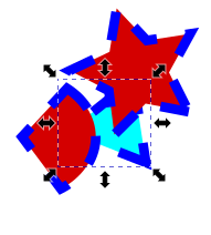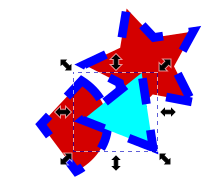 - 操作したい矢印の上にマウスカーソルを移動してクリック、示している方向にドラッグすると、回転、変形します。