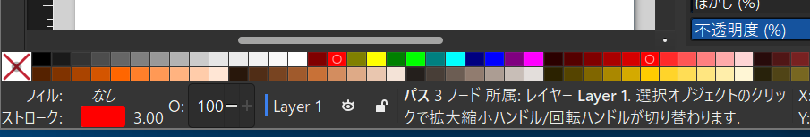 または、「shiftキーを押しながら」好きな色のパレットをクリックすると、ストローク (線,縁)の色が設定されます。