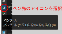 - 左側のアイコンから、 ペンツール(ベジェ曲線/直線を描く)のアイコンをクリック。