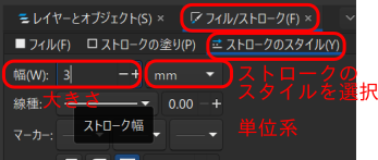 a. 「ストロークのスタイル」のタブをクリック