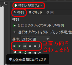 a. 垂直方向を揃える場合は、このアイコンから選択します。