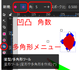 - 角数と凸凹形状を選択します。