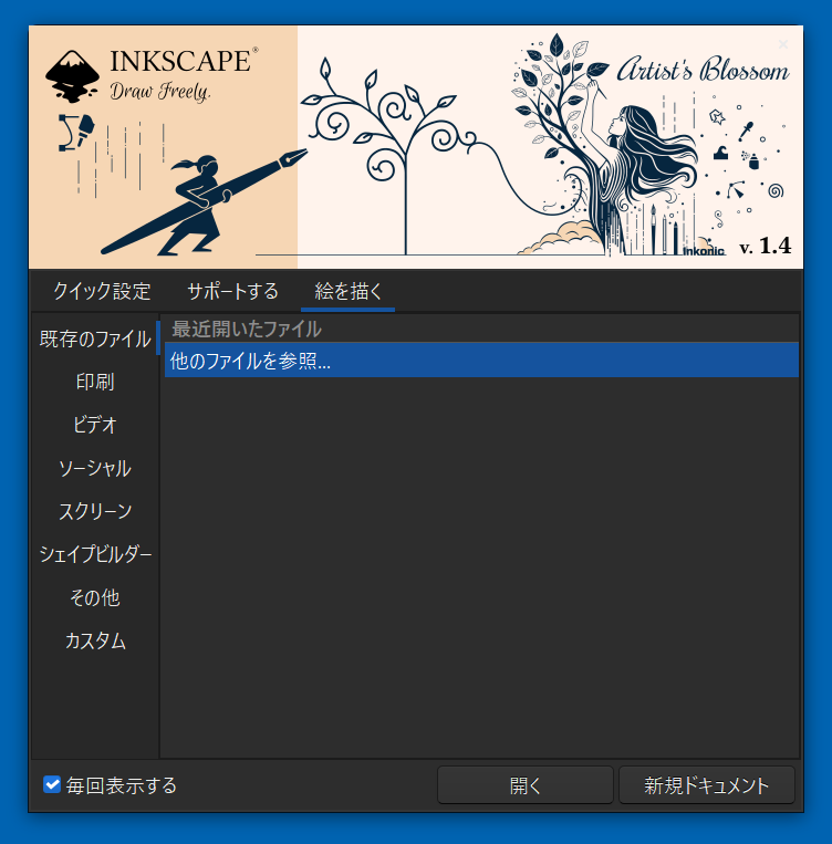 1.Inkscape起動直後の画面です。