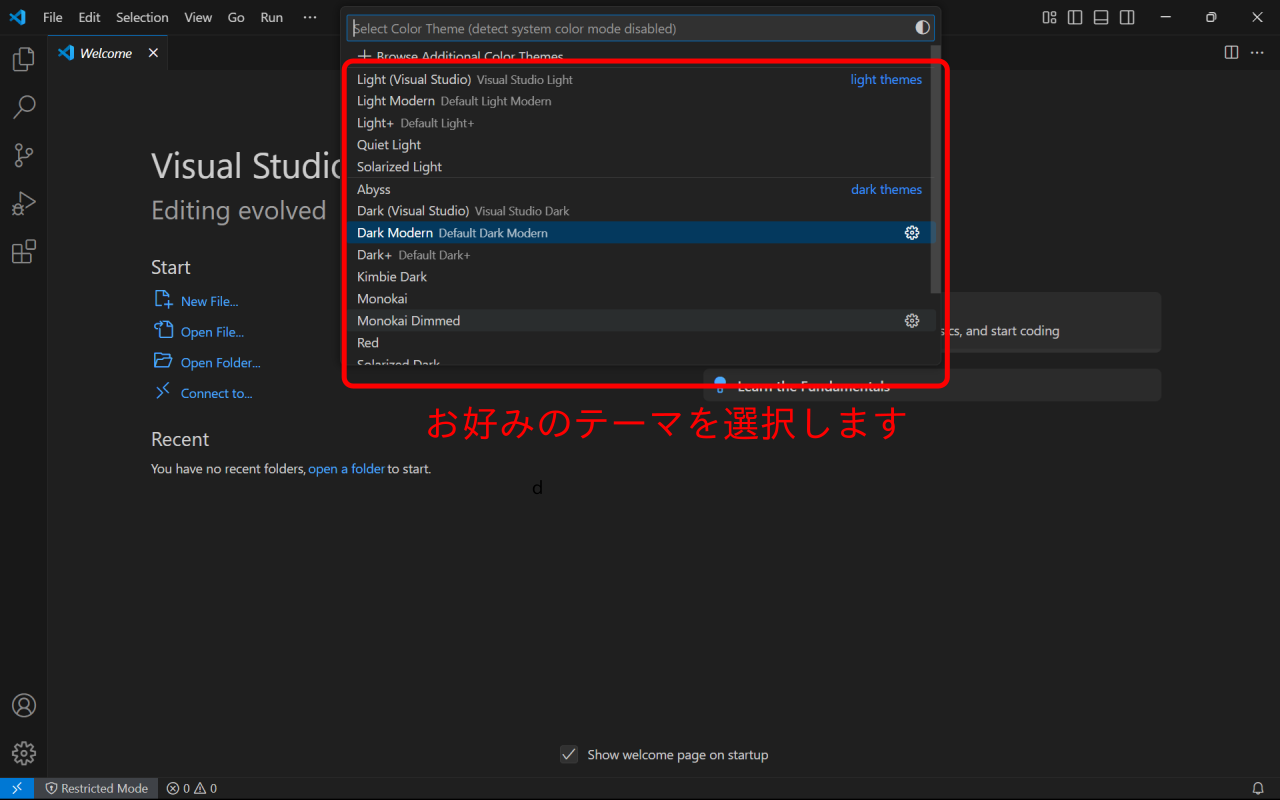 ファイル -> ユーザー設定テーマ -> 配色テーマ