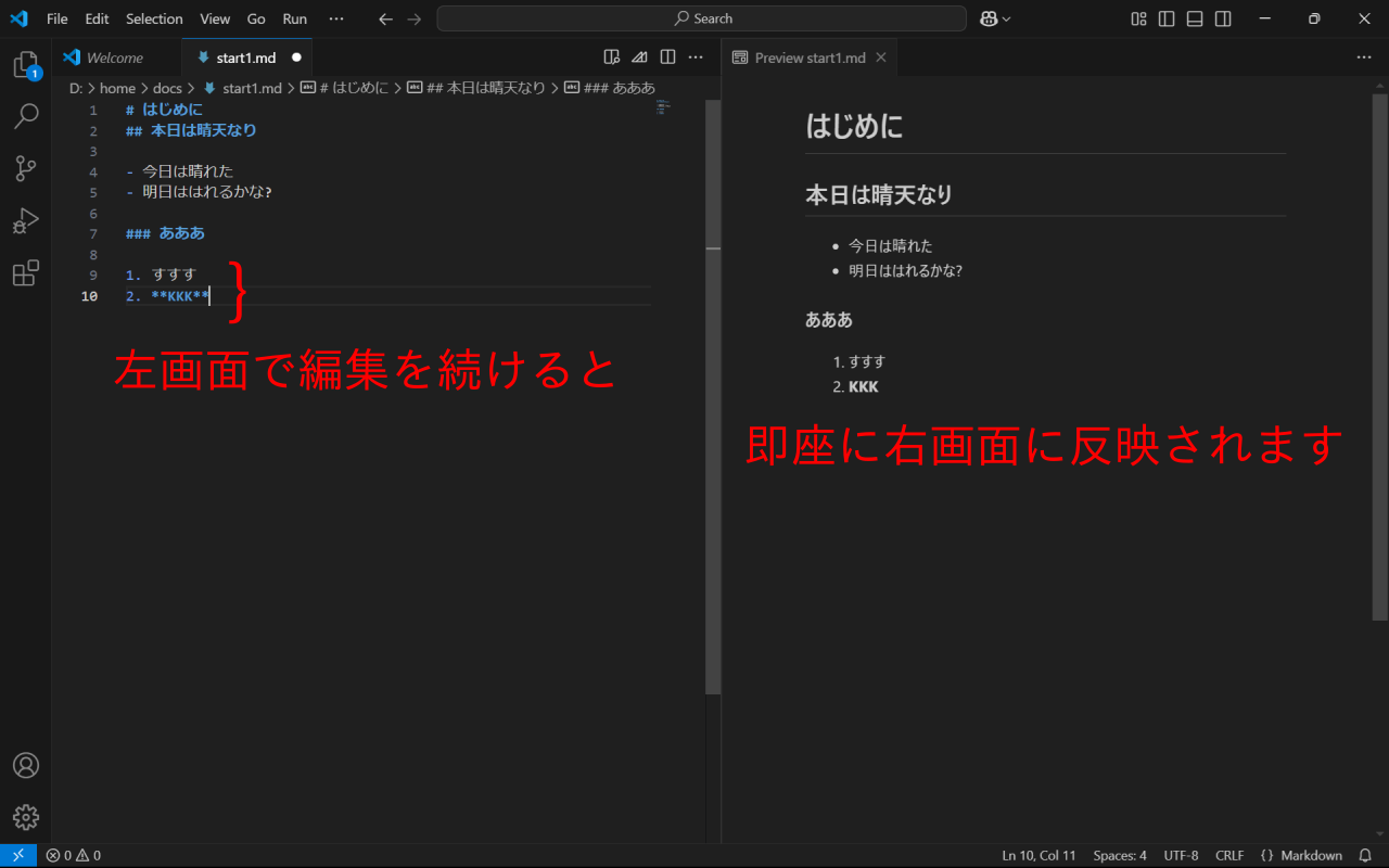 - 左画面で、編集を続けると、自動的に右画面に反映されていきます。