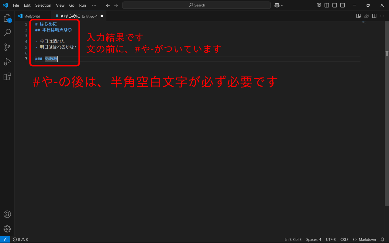改行や空白行が半角空白などが大きな意味をもつので、慣れるまで注意してく ださい。