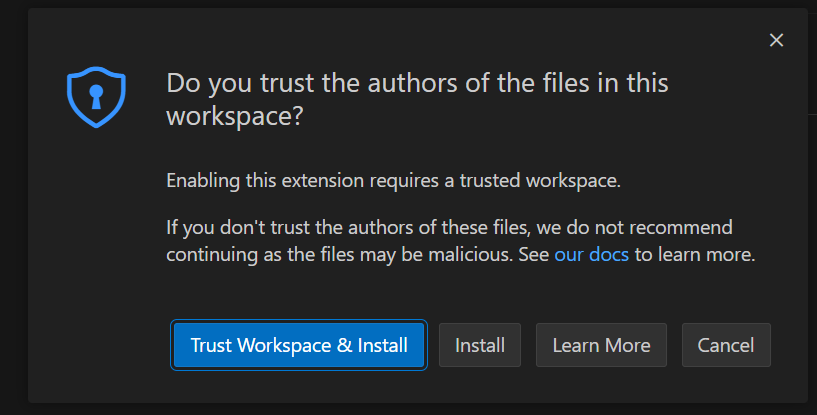 作業場所(フォルダ)がwindowsがわからない場所だと、以下のダイアログがでます。